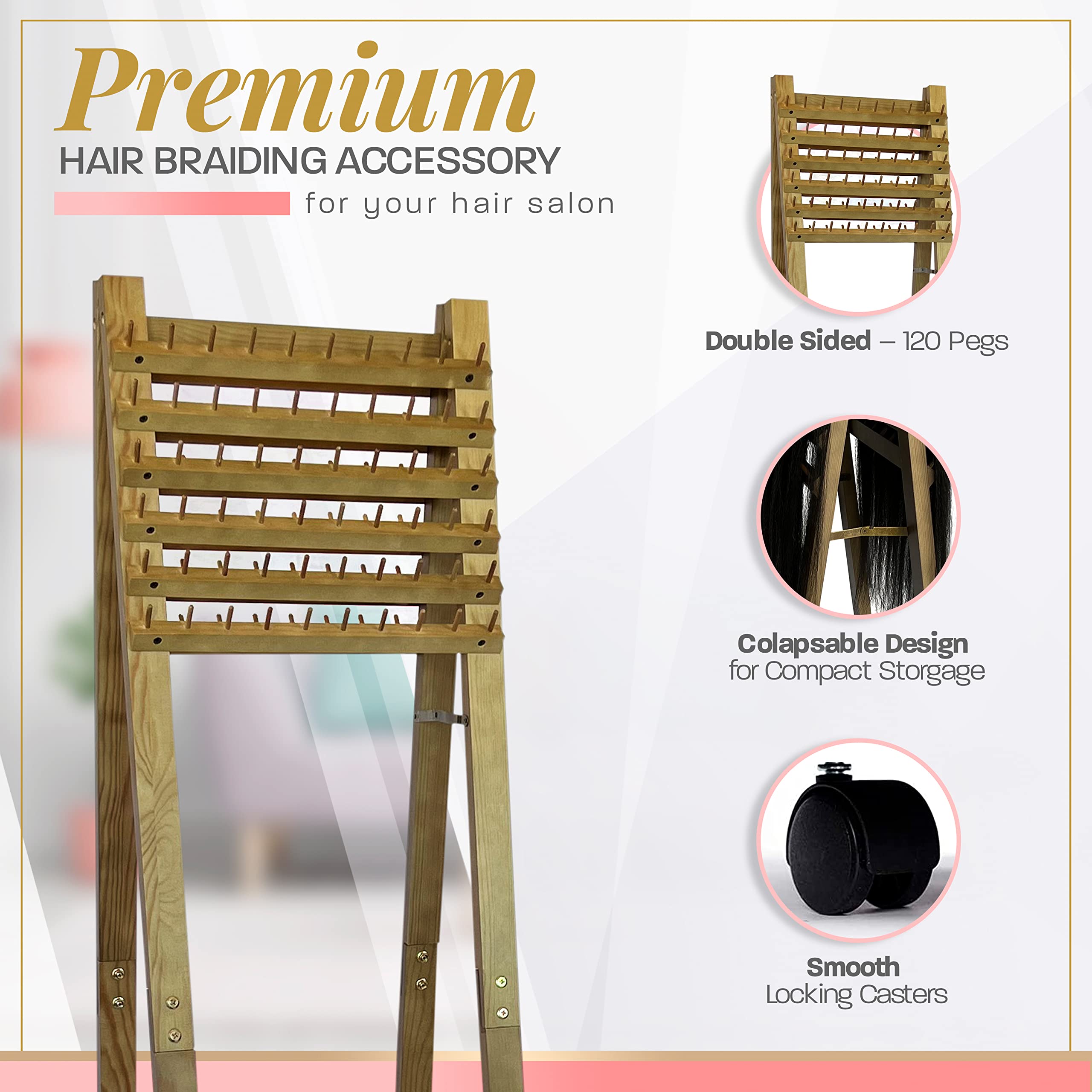 Amazon Com Premium Braiding Hair Rack Wooden Hair Braiding Rack With 120 Pegs And Locking Caster Wheels Ergonomic Braid Rack For Stylists Time Saving Braiding Hair Stand Versatile Extension
